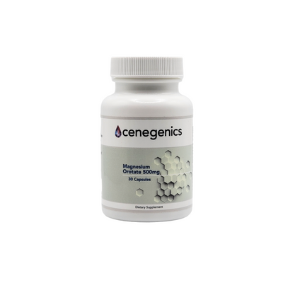 Magnesium plays an essential physiological role in many functions of the body. Magnesium Orotate, the magnesium salt of orotic acid, is an intermediate in the biosynthesis of DNA and RNA in plants and animals. It is often used to help treat symptoms of extracellular magnesium deficiency. Chronic low magnesium has been associated with a number of chronic conditions including diabetes, hypertension, dementia, chronic lung disease, asthma, cardiac conditions, and osteoporosis. Cenegenics Magnesium Orotate is easily absorbed to help keep you going at optimal capacity.